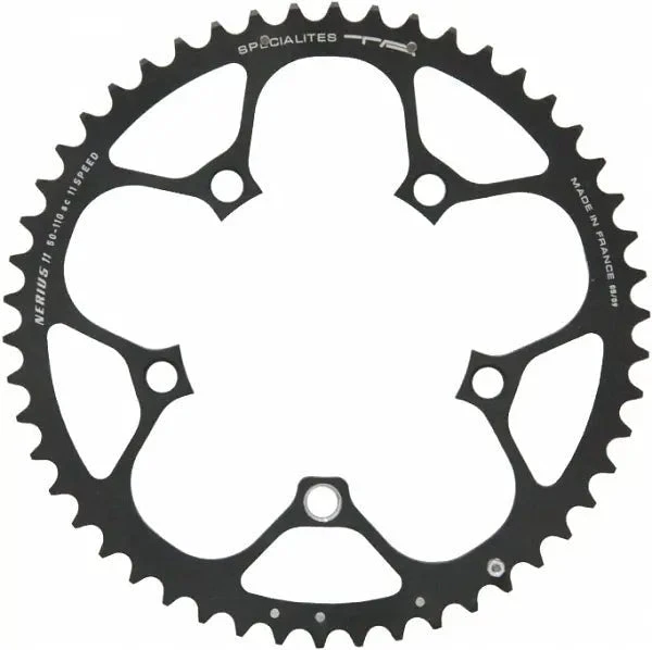 TA Specialites Nerius 11-speed compact chainrings especially for Campagnolo 11-speed cranksets. A good and durable alternative to the original chainring. TA makes her chainrings from the best 7075 T6 aluminum. The teeth are machined on a lathe in a traditional way which enables a much better and more accurate tooth shape than most of the other manufacturers.